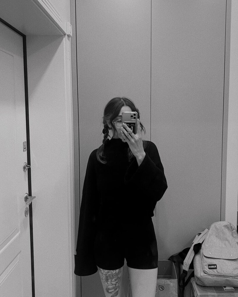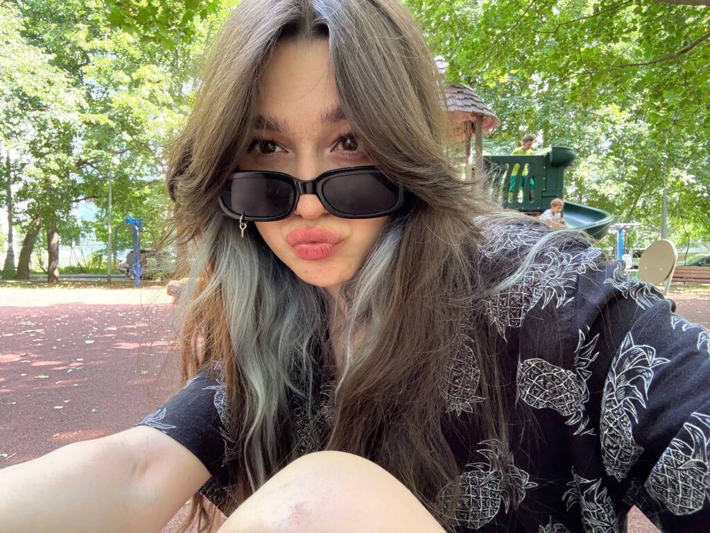 В TikTok она активно публикует короткие ролики с музыкой, реакциями и трендами — суммарное количество лайков превышает миллион.